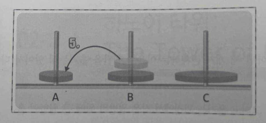 B에 있던 가장 작은 원반을 A로 옮긴다.