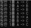 위에서 2개의 원반을 B로 옮기는 상황(A->B),