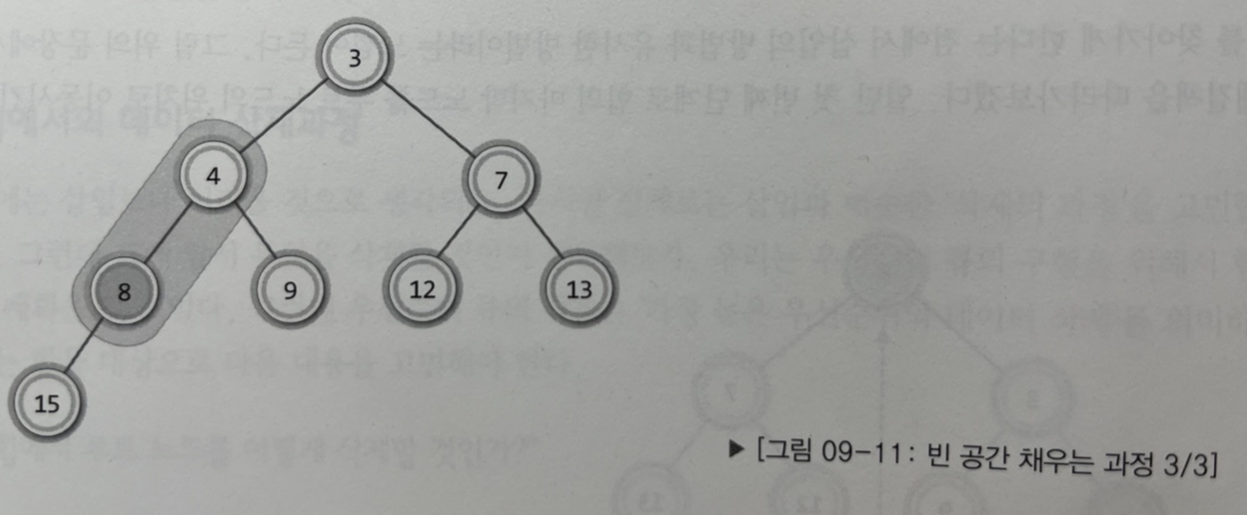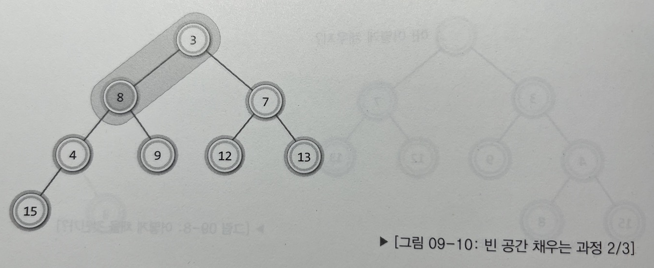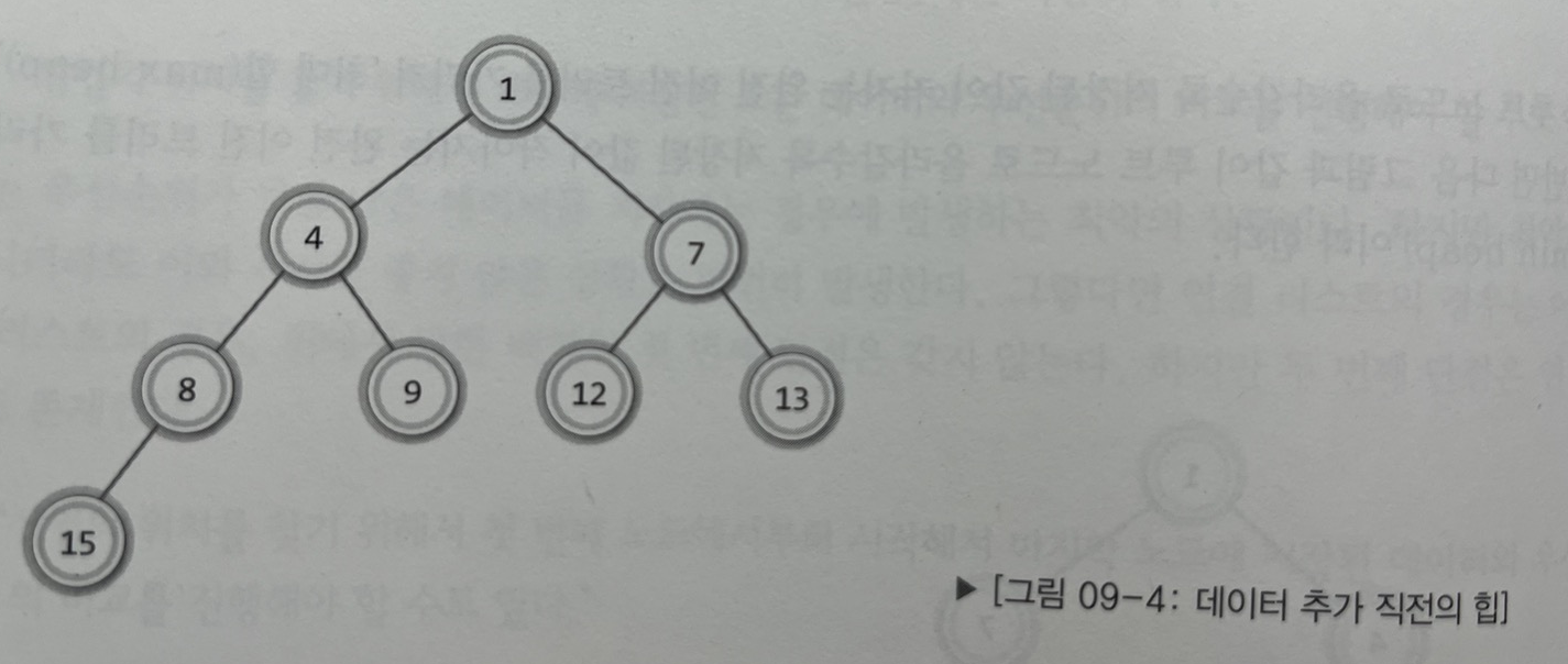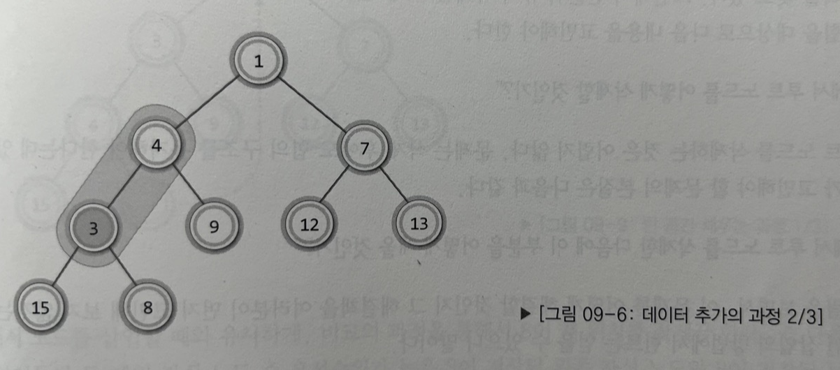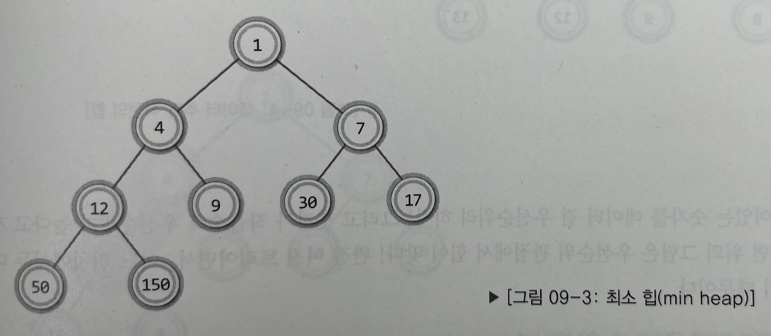 반면 루트 노드로 올라갈수록 저장된 값이 작아지는 완전 이진 트리를 가리켜 최소 힙이라 한다.