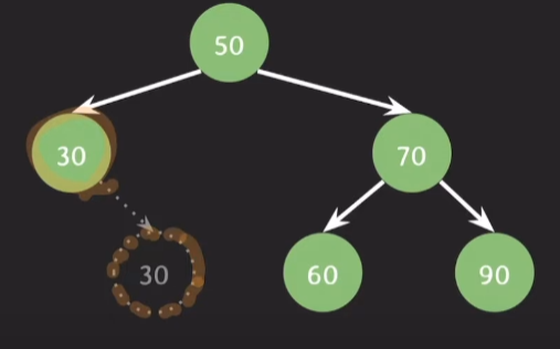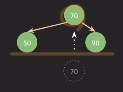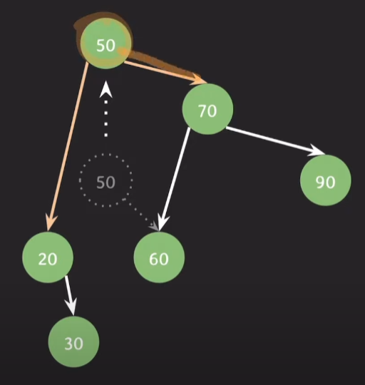 50의 오른쪽 자식이였던 60은 70의 왼쪽 자식이 된다.