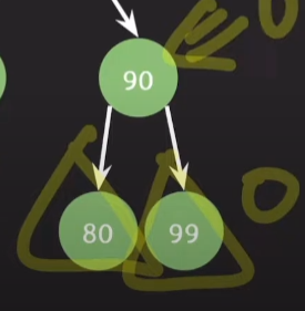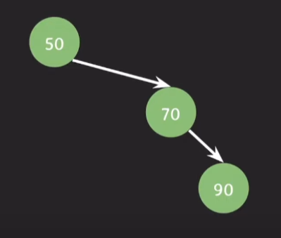 노드 90 은 왼쪽 서브트리와 오른쪽 서브트리의 높이가 모두 0이므로 0의 balance factor 값을 갖는다.