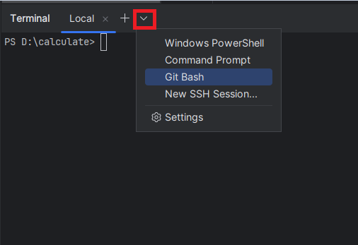 2. IntelliJ에서 터미널에서 Git Bash 를 선택하고 rm -rf .git 입력