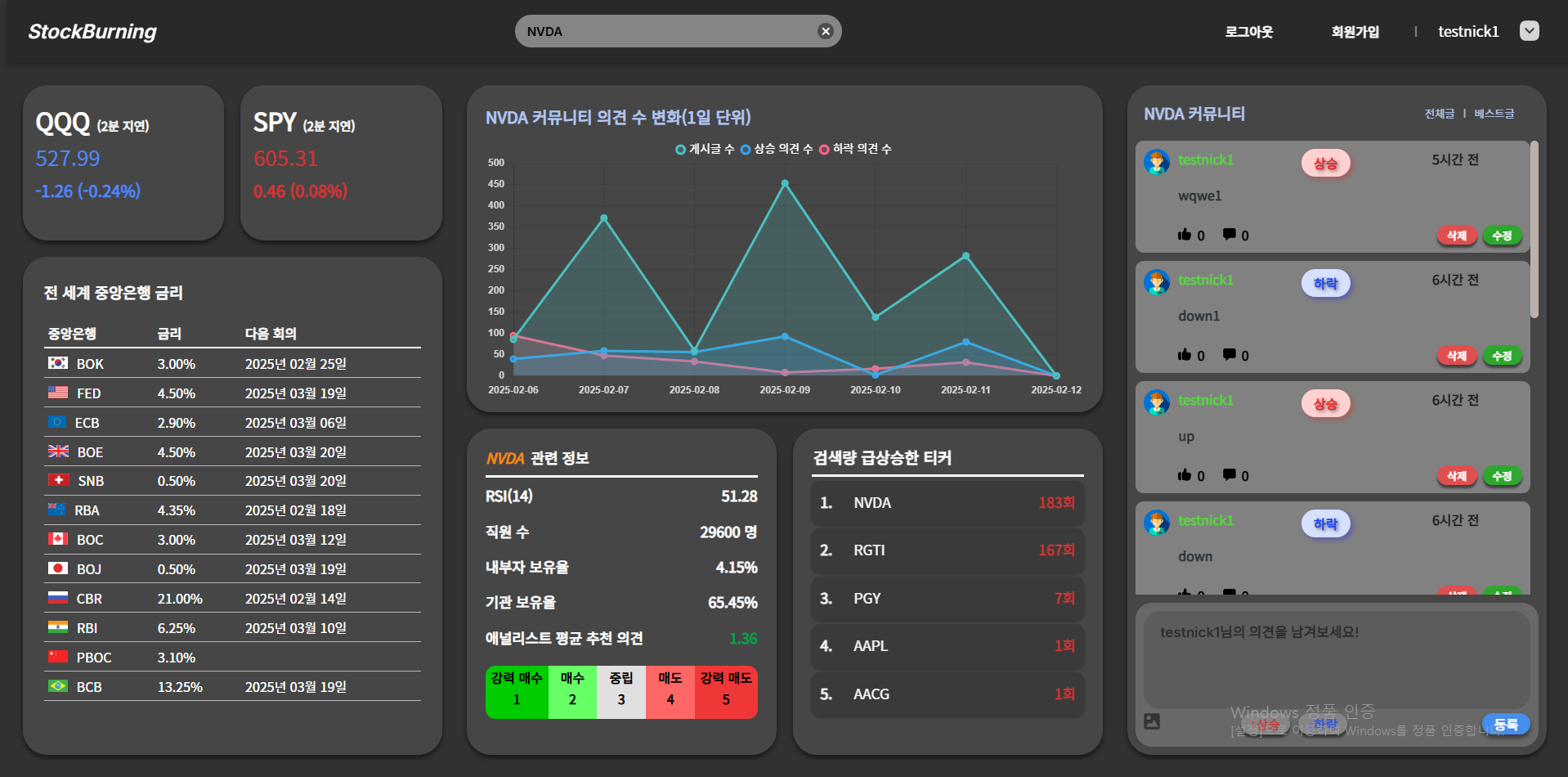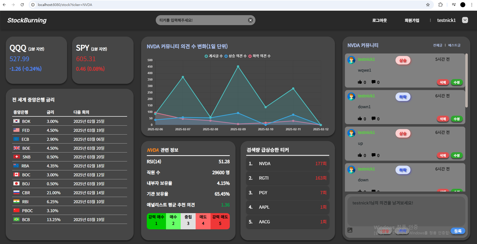 위 그림처럼 내비게이션 바에 특정 티커를 입력하면 여러 컴포넌트와 함께 차트가 생성되는데