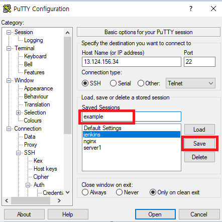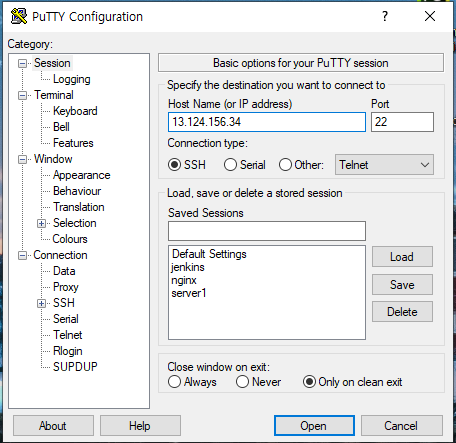 2-1. putty 에서 IP주소 입력하기