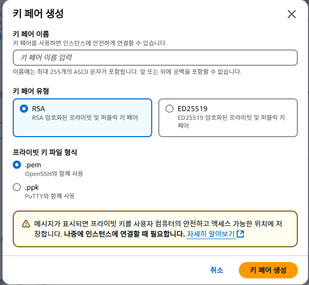 1-5. 키 페어 생성 및 지정