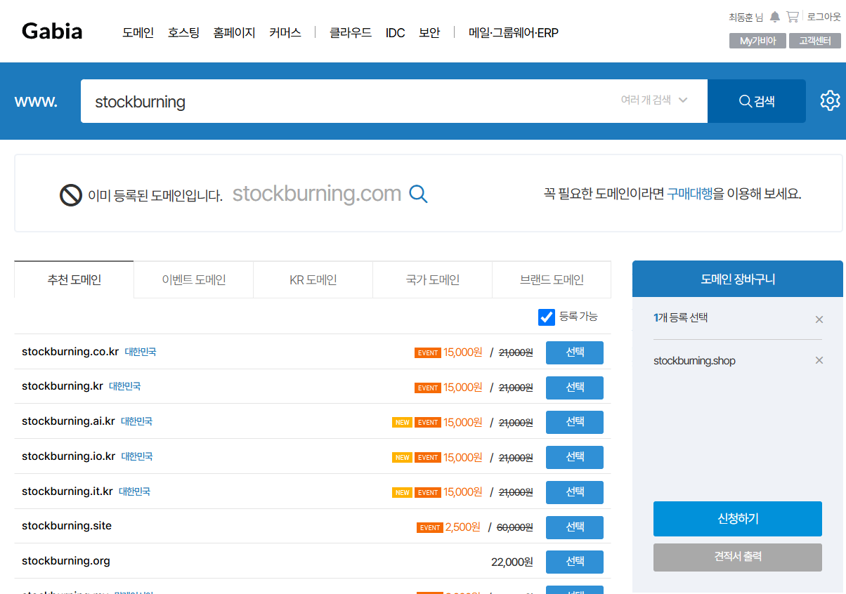 12-1. 원하는 도메인명 검색 후 구매