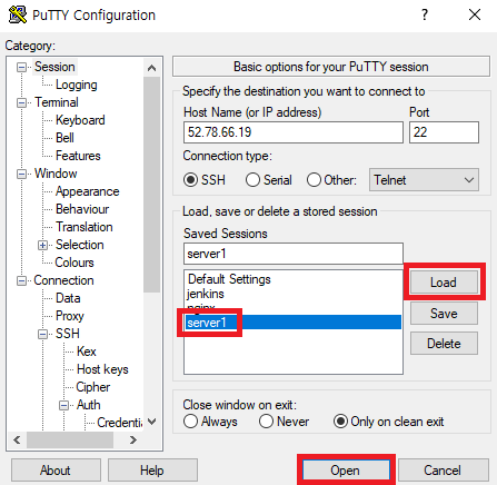 2-4. putty 에서 원격서버 연결하기