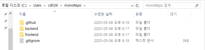 5. backend, frontend 폴더 안에 .gitkeep 파일 생성