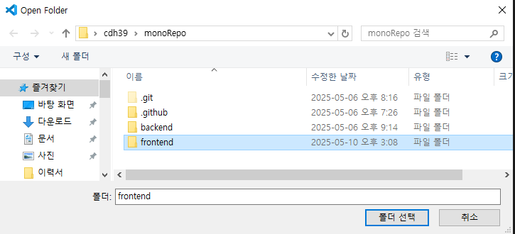 10. 폴더 구조 설정 후 git add -> git commit -> git push 실행