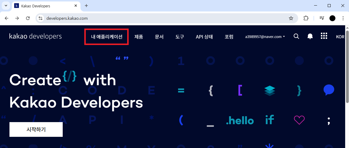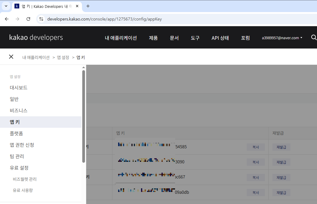 5. 애플리케이션이 완성됐으면 앱키로 이동한다.